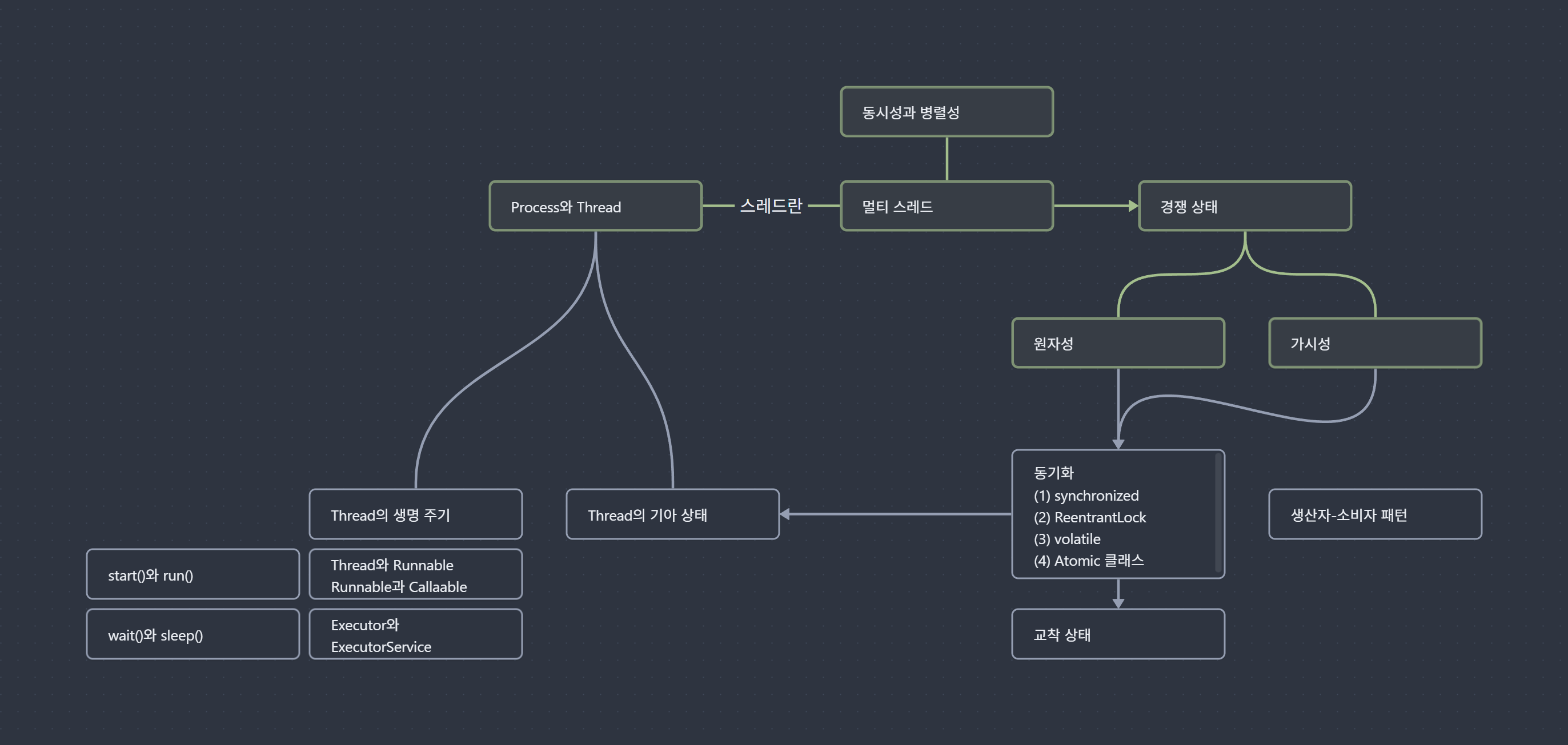 멀티 스레드는 성능과 응답성을 높이지만, 적절한 동기화가 없으면 원자성, 가시성 문제로 경쟁 상태가 발생할 수 있다. 따라서 멀티 스레드 프로그래밍을 하기 위해서는 동기화 기법은 필수로 알아야 한다. 다음 글에서는 Java에서 제공하는 동기화 방식과 함께, 동기화로 인해 발생할 수 있는 교착 상태(DeadLock)에 대해 자세히 정리할 예정이다.